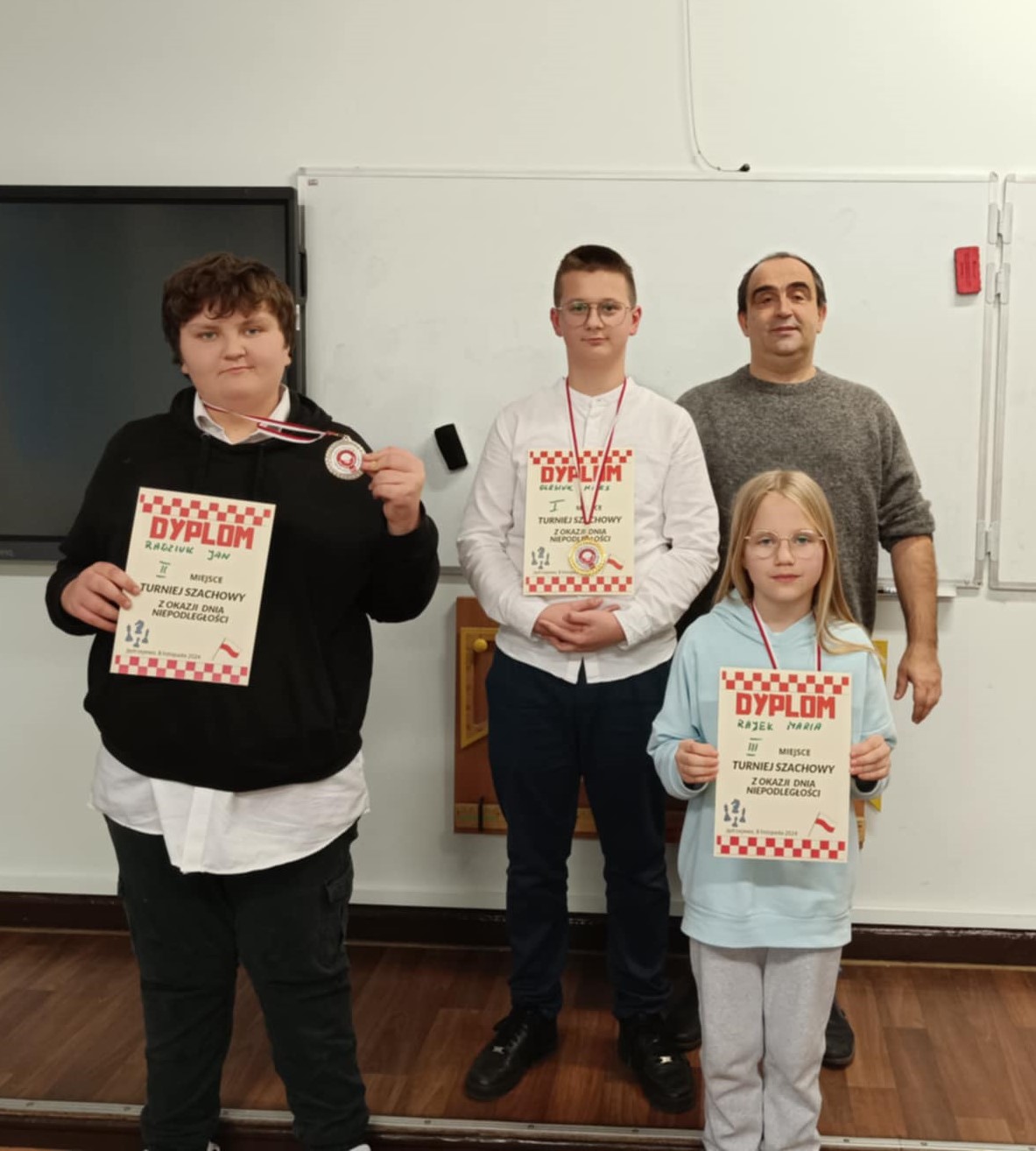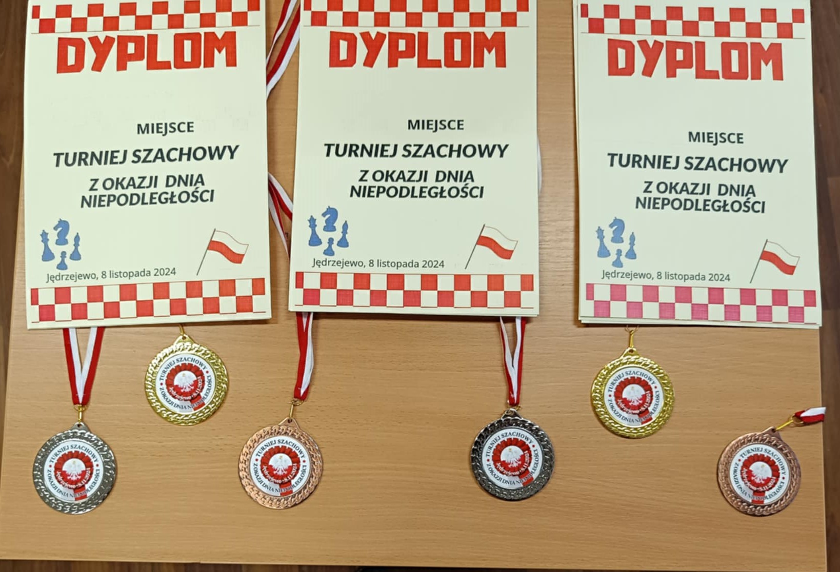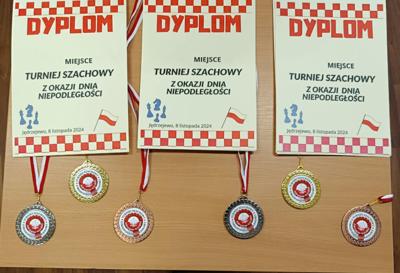 Dnia 08.11.2024 w Szkole w Jędrzejewie rozegrano I Turniej Szachowy z okazji dnia niepodległości. Organizatorem była Szkoła w Jędrzejewie a zawody przeprowadził Sylwester Flisikowski. W zawodach wzięło udział 14 zawodników naszej szkoły. Turniej rozegrano w dwóch grupach wiekowych klasy 1 - 4 i klasy 5 - 8. Po zaciętych partiach wyłoniono najlepszych: