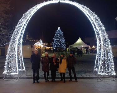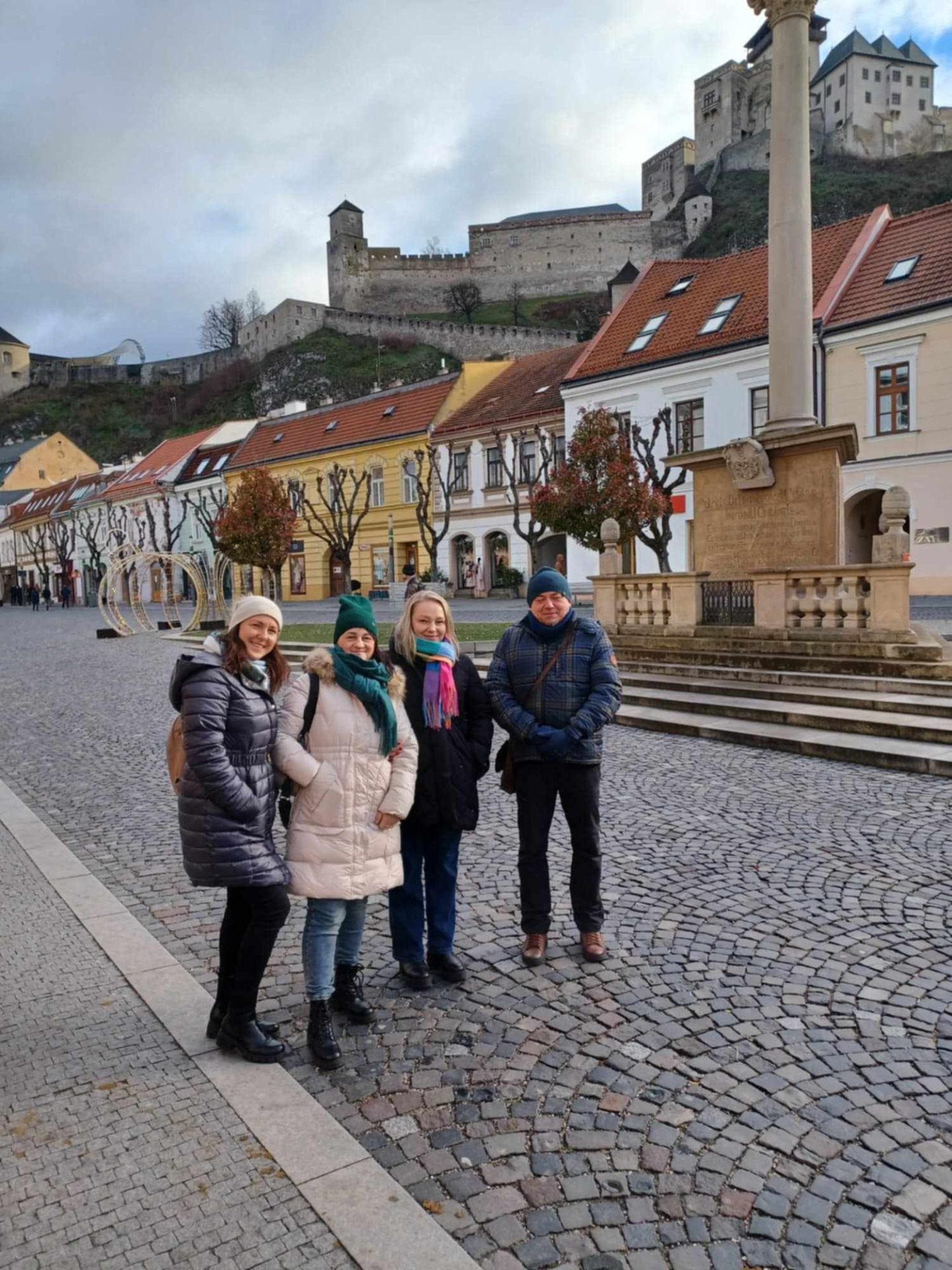 W drugiej części wizyty odwiedziliśmy miejscowy Urząd oraz Dom Kultury. Gospodarze zapewnili też bogaty program turystyczny – zwiedziliśmy Trenčin, Nitrę i pałac w Oponicach. Pamiętaliśmy też o naszych przyjaciołach z Presel’an (szkoła partnerska Jędrzejewa od 2007 r. ) - spotkaliśmy się z Panem Milanem Kopčekiem i Mariánem Pčelárem – przekazaliśmy bożonarodzeniowe prezenty i złożyliśmy życzenia. Świąteczny nastrój udzielił się wszystkim i sprzyjał rozmowom – mamy nadzieję, że otworzyliśmy nowy rozdział integracji społeczności szkolnych Unii Europejskiej.