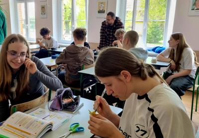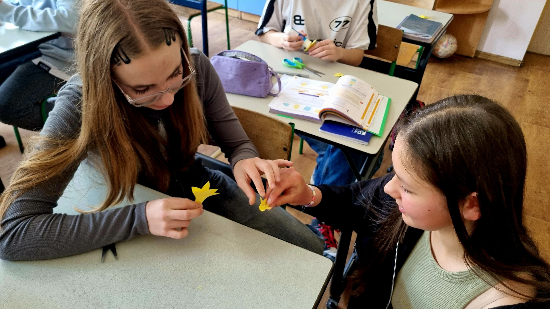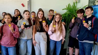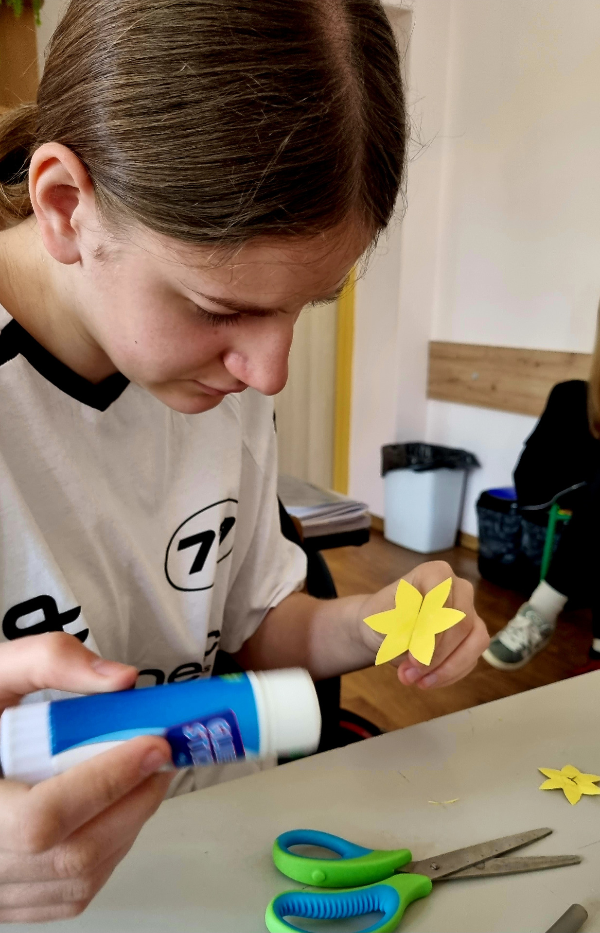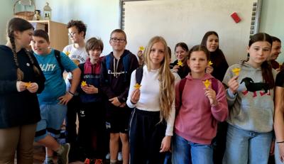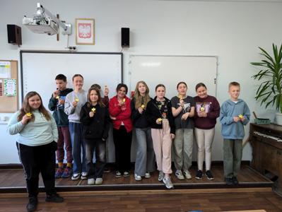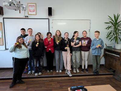 Wzorem lat ubiegłych szkoła przystąpiła do akcji ,,Żonkile’’, upamiętniającej 82. rocznicę powstania w getcie warszawskim i organizowanej przez Muzeum Polin w Warszawie od 2013 roku. Żółty żonkil, który stał się od tego czasu symbolem solidarności, szacunku i pamięci o tragedii warszawskich Żydów, jest związany z osobą Marka Edelmana, jednego z przywódców Żydowskiej Organizacji Bojowej. Marek Edelman w każdą rocznicę powstania w getcie otrzymywał żółte żonkile od anonimowej osoby. Od początku też, w każdą rocznicę powstania, przychodził pod Pomnik Bohaterów Getta (w ostatnich latach życia przyjeżdżał pod pomnik na wózku inwalidzkim), aby oddać hołd poległym i złożyć bukiet żółtych kwiatów, które stały się symbolem zbiorowej pamięci. W roku bieżącym tematem przewodnim akcji – oprócz wykonania symbolicznego żonkila – jest odwaga i jej różne przejawy oraz wartości takie jak: pomoc innym, przyjaźń, szacunek. Dla każdej grupy wiekowej Muzeum Polin przygotowało ciekawe materiały edukacyjne do wykorzystania na zajęciach z dziećmi (opowiadania, krótkie filmy, scenariusze lekcji i karty pracy). tz