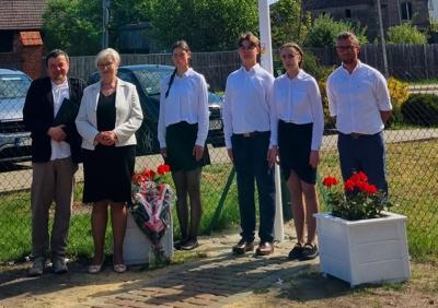 Symbolicznym gestem było złożenie bukietu w barwach narodowych przez obecną na uroczystości Panią Radną Aleksandrę Glapińską – dziękujemy.