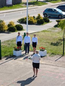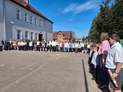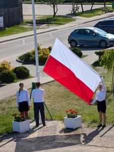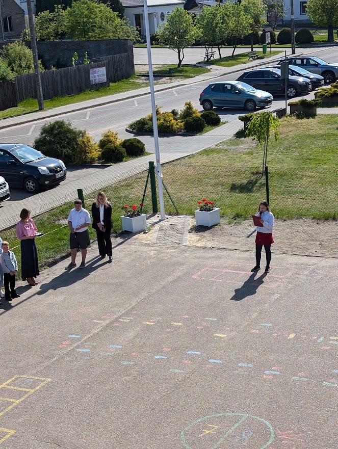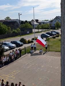 W czasie uroczystości i śpiewania Hymnu, „zadebiutował” maszt, który od niedawna stoi na boisku szkolnym. Uczniowie mogli z dumą obserwować jak Biało-Czerwona pnie się w górę, aby przez najbliższe dni przypominać o narodowych świętach.