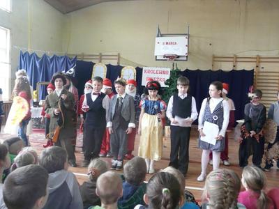 Z okazji 8 marca w naszej szkole odbył się uroczysty apel, na którym uczniowie klasy III szkoły podstawowej przedstawili przedstawienie pt. "Królewna Śnieżka"oraz zaśpiewali piosenkę w języku angielskim- Here comes the sun - przygotowaną przez panią Joannę Magdziarz. Wychowawca klasy III pani Barbara Piątyszek wspaniale przygotowała swoich wychowanków oraz znakomicie sprawdziła się w roli reżysera. GRATULUJEMY!!!