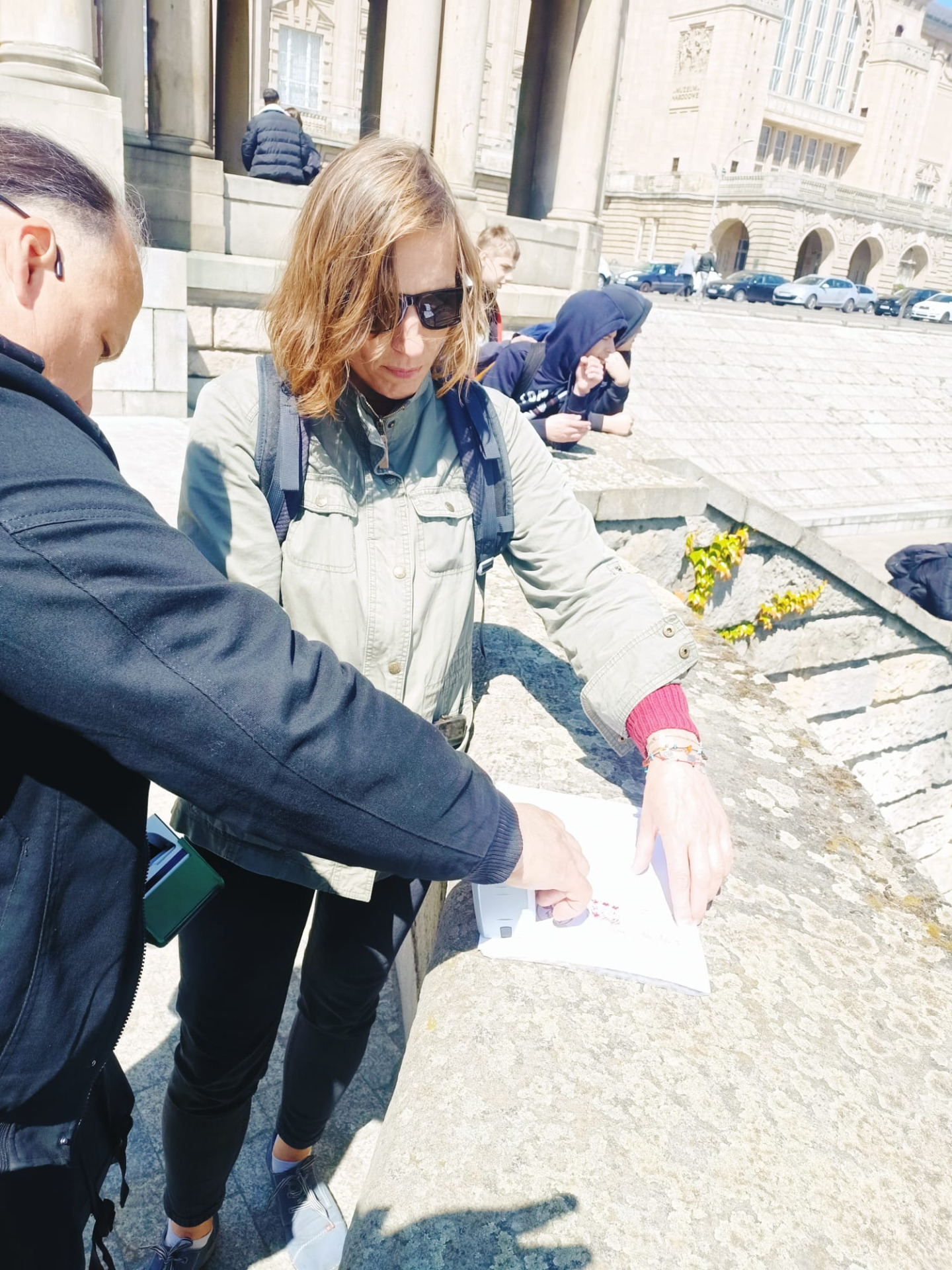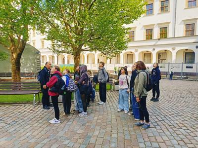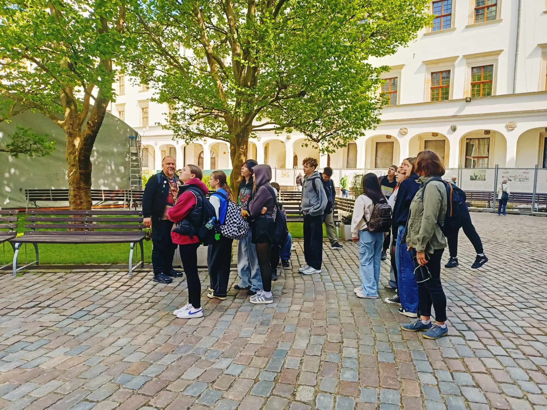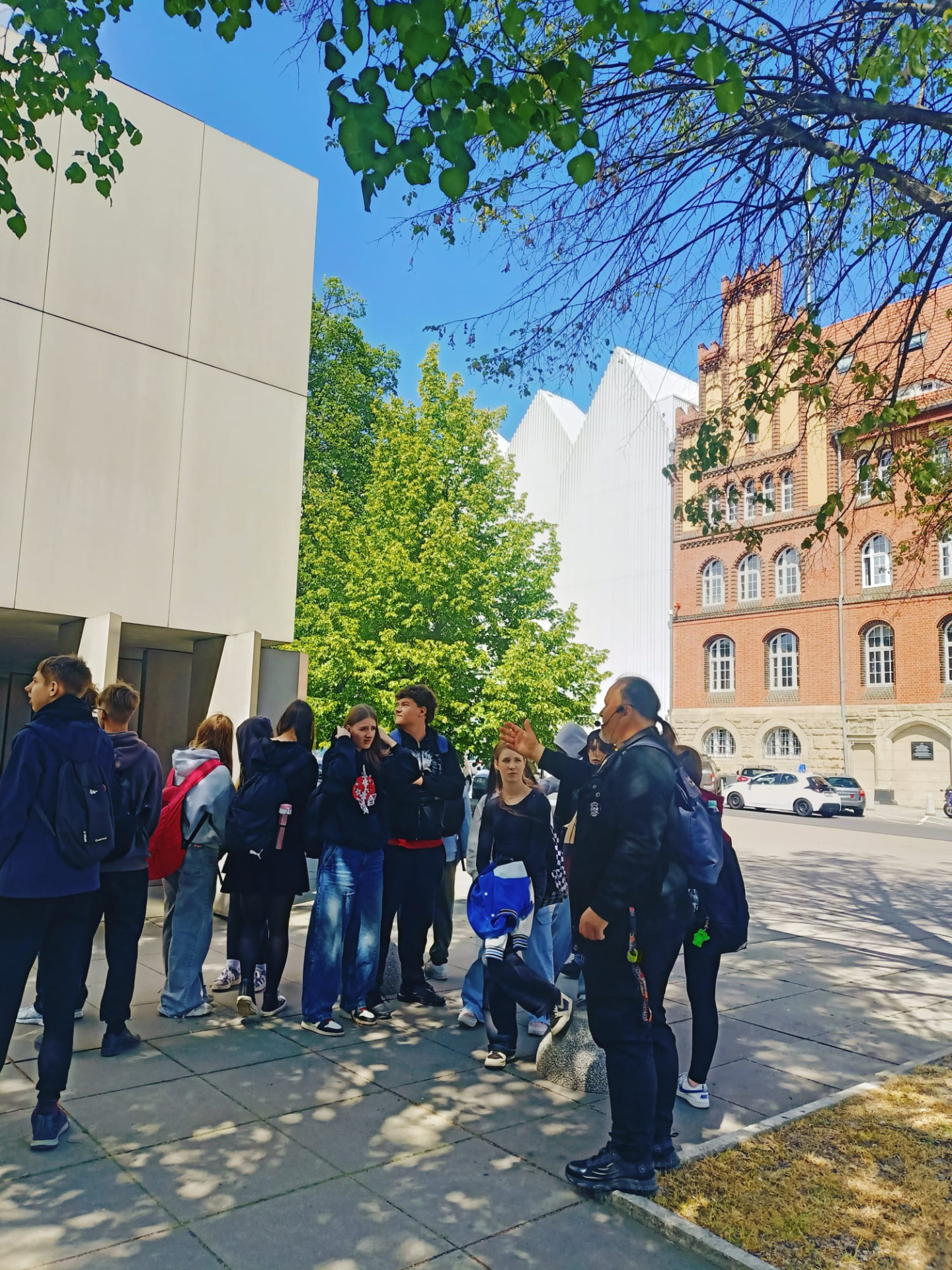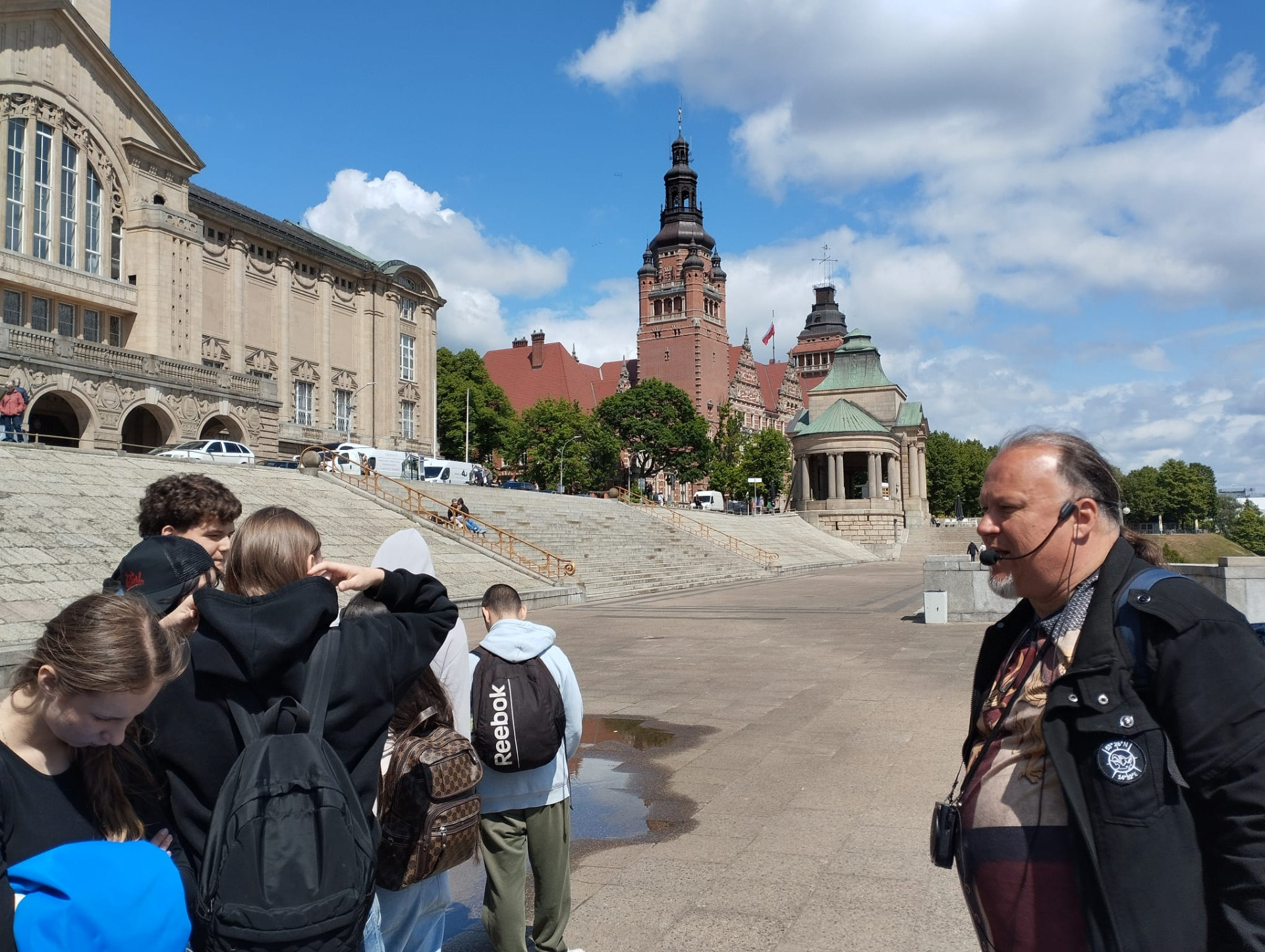 Na miejscu czekał na nas przewodnik, Tomasz Wieczorek, który w ciekawy i oryginalny sposób pokazał nam miasto i jego najważniejsze miejsca: Zamek Książąt Pomorskich, Wały Chrobrego, Bazylikę Archikatedralną (wraz z platformą widokową na odbudowanej wieży), filharmonię i Plac Solidarności).