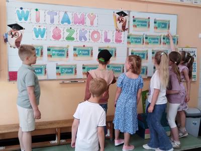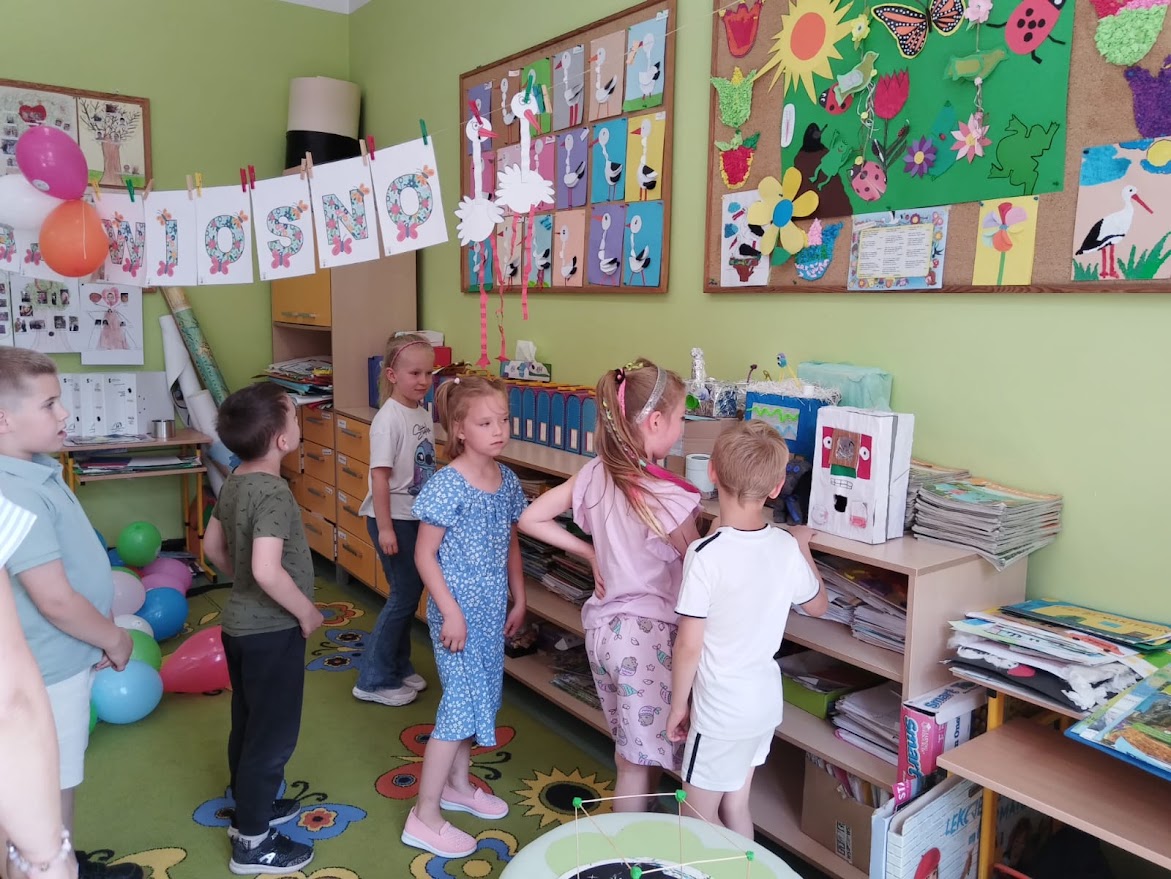 W piątek, 13 czerwca, w ramach „Dnia Otwartych Drzwi” naszą szkołę odwiedziły dzieci, które od września rozpoczną naukę w klasie I. Przedszkolaki obejrzały przyszłą salę lekcyjną, a następnie zapoznały się z budynkiem szkoły. Na boisku czekała na nie niespodzianka – nauczyciel wychowania fizycznego, pan Sebastian, przygotował dla nich ćwiczenia przy skocznej muzyce.