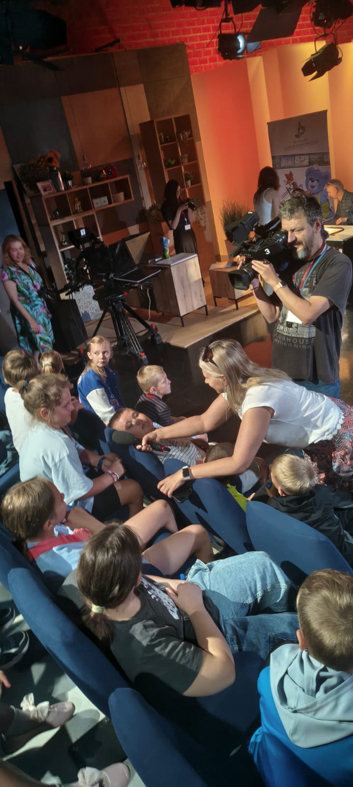 🎬 Podczas wizyty dzieci mogły zobaczyć, jak wygląda praca w profesjonalnym studiu telewizyjnym. Dowiedziały się, jak powstają scenariusze, jak animowane postacie nabierają życia dzięki pracy grafików i animatorów. Uczniowie z ogromnym zainteresowaniem obserwowali proces tworzenia ruchu, dźwięku i efektów specjalnych, które razem tworzą magiczny świat bajek.