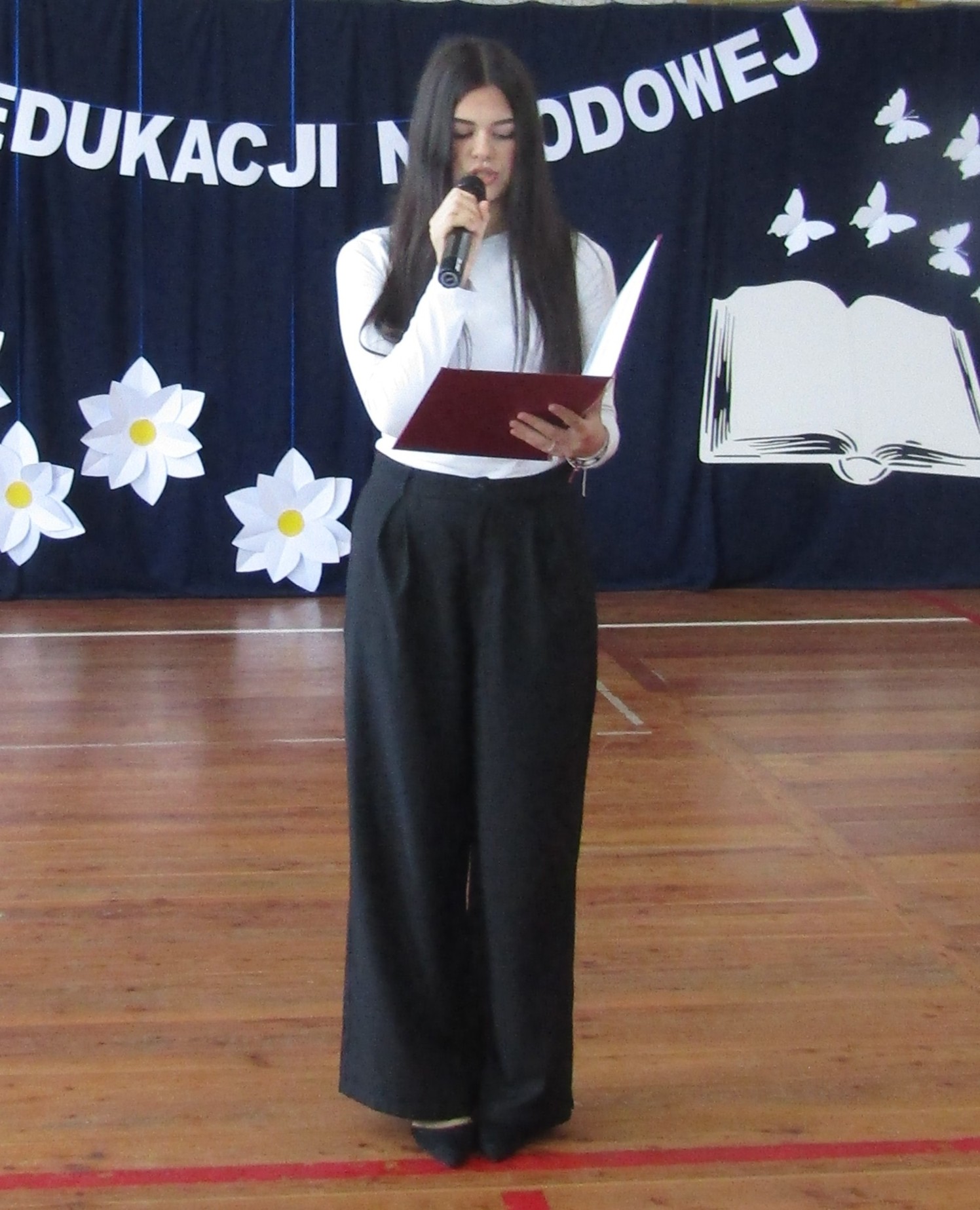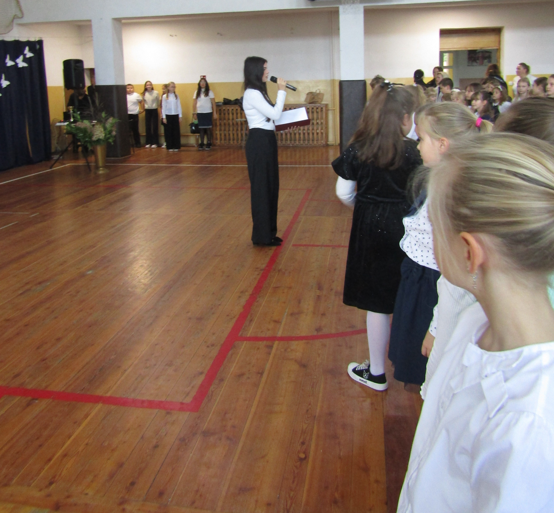 Akademi臋 z wdzi臋kiem poprowadzi艂a Zuzia, a cz臋艣膰 artystyczn膮 u艣wietni艂y wyst臋py wokalne Marysi, Leny oraz uczniów klasy 1 馃幎. Pi臋kne wiersze zaprezentowali uczniowie klasy 4, wprowadzaj膮c wszystkich w uroczysty nastrój.