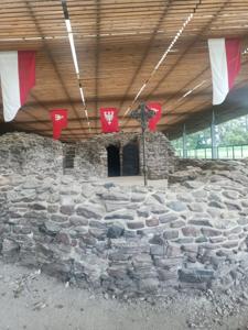 Pierwszy był wczesnośredniowieczny gród w Gieczu. Obecnie znajduje się tam rezerwat archeologiczny, w którym można poznać średniowieczną historię miejsca oraz odnalezione tam skarby i rzeczy codziennego użytku. Po obejrzeniu ekspozycji i wykładzie pani przewodnik udaliśmy się na krótki spacer po grodzie.