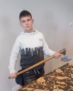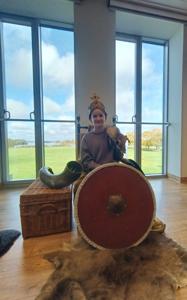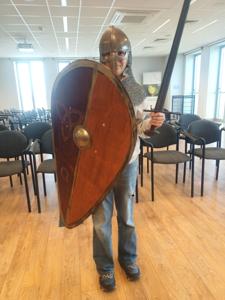 Ta część zwiedzania była nietypowa, ponieważ mogliśmy dotykać i przymierzać eksponaty, które są wiernymi kopiami prawdziwych średniowiecznych znalezisk.
