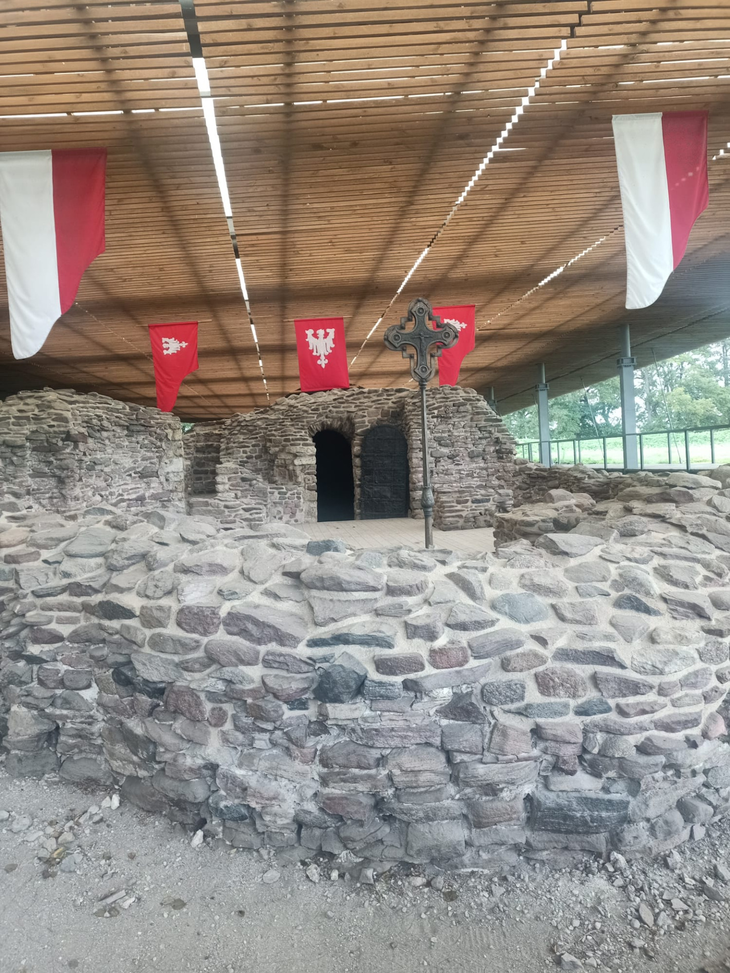 Po lekcji odbyliśmy krótki rejs promem na wyspę Ostrów Lednicki, by zwiedzić między innymi Palatium z X wieku, czyli miejsce gdzie prawdopodobnie odbył się chrzest Mieszka I, a tym samym narodziła się Polska jako państwo.
