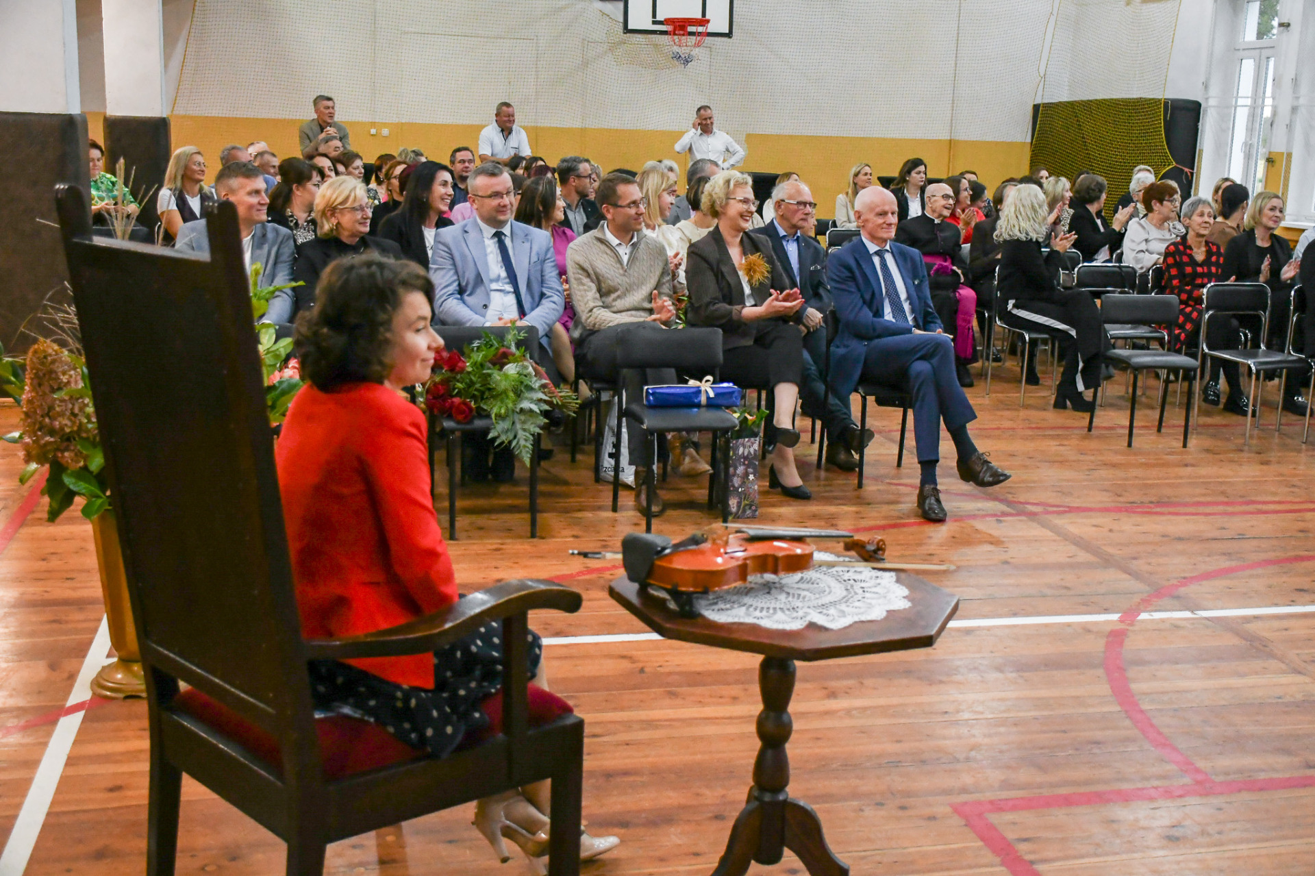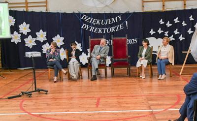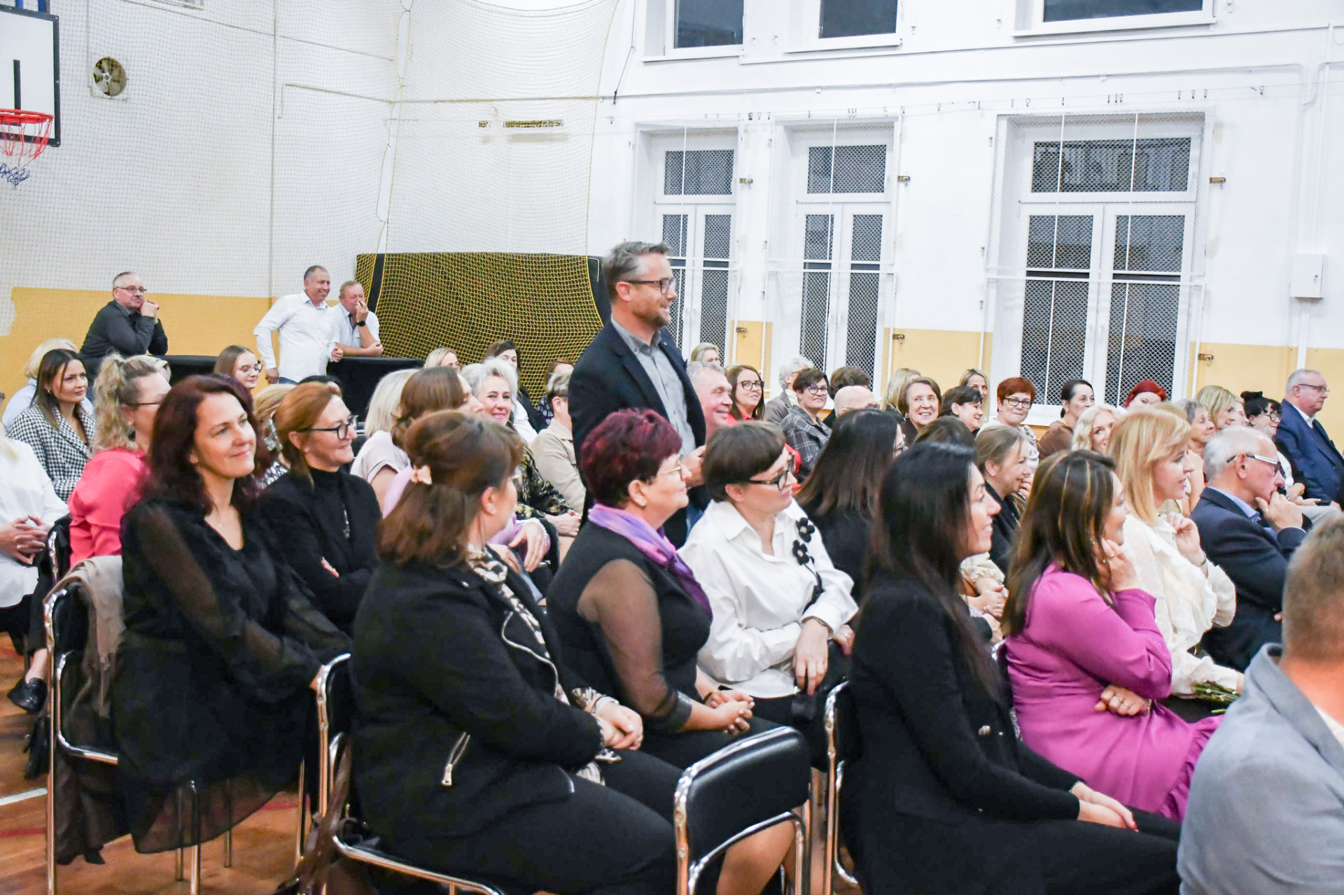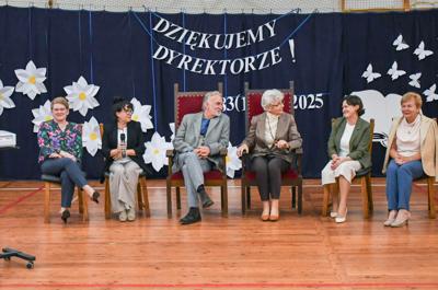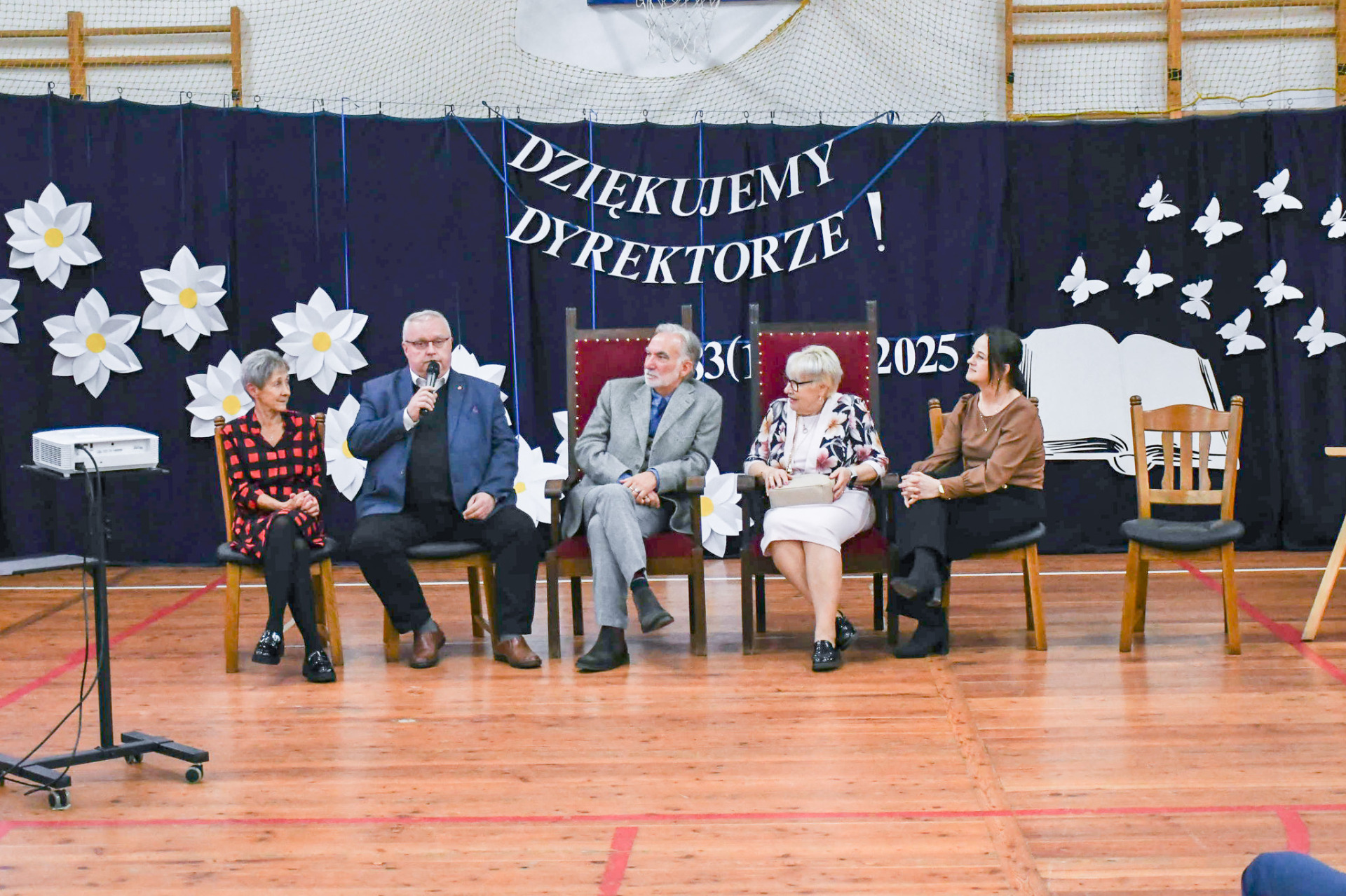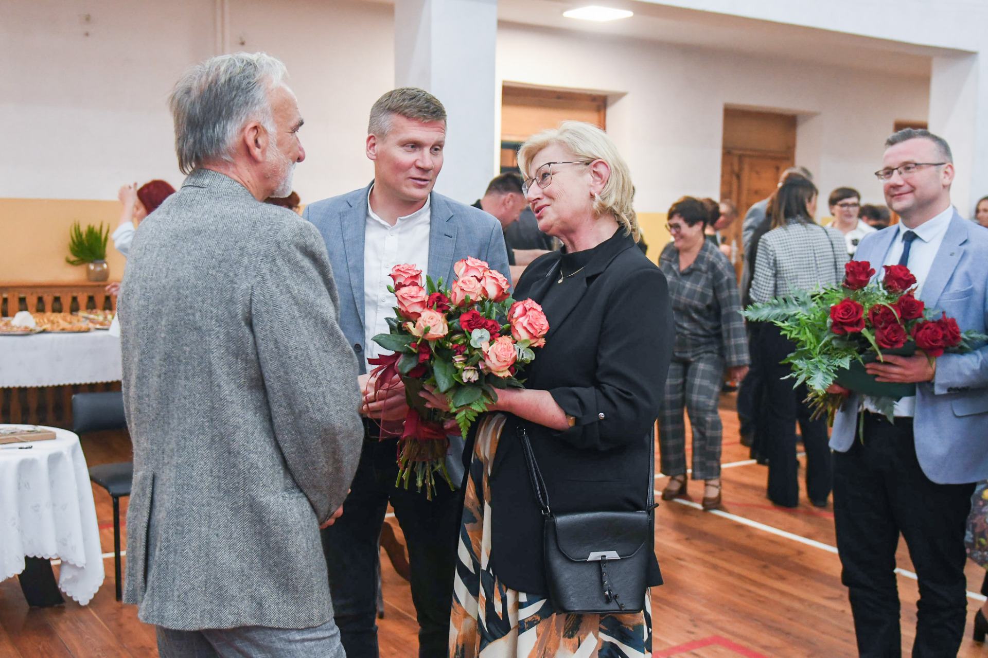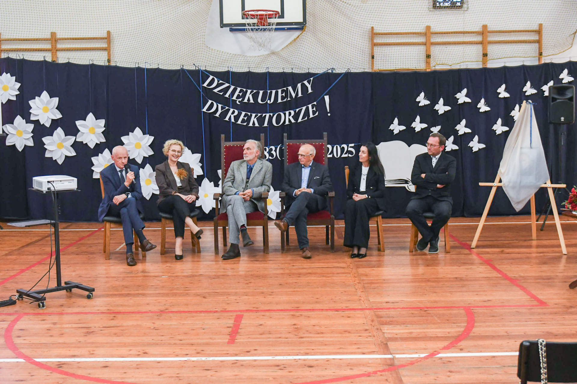 Czwartkowe popołudnie 9 października na pewno zapisało się w historii naszej szkoły. Tłumy pracowników i współpracowników podziękowało Dyrektorowi Sławomirowi Szymańskiemu, który podjął decyzję o przejściu na emeryturę. Pan Sławomir Szymański pracował w Szkole w Jędrzejewie od 1983 r., a funkcję dyrektora pełnił od 1994 r. Był nauczycielem fizyki i informatyki oraz wychowawcą. Sprawnie zarządzał placówką, co przełożyło się na liczne inwestycje, zainicjował i wspierał wiele projektów edukacyjnych - w tym te najcenniejsze dla społeczności uczniowskiej - związane ze współpracą ze szkołami aż 4 krajów: Słowacji, Czech, Gruzji i Szwecji. Skutecznie rozwiązywał pojawiające się problemy i miał dobry kontakt ze współpracownikami, Radą Rodziców i organem prowadzącym. Potwierdziły to liczne wspomnienia zaproszonych gości podczas spotkania. A co do samej uroczystości – planowaliśmy ją od kilku miesięcy. Na zaproszenie zareagowano bardzo pozytywnie i na sali sportowej pojawili się emerytowanie pracownicy, koledzy z pracy, obecni pracownicy szkoły, dyrektorzy szkół Gminy Czarnków, działacze związkowi, samorządowcy i przyjaciele. Spotkanie otworzył Dyrektor Szkoły Pan Robert Zimny i już po kilku minutach nastąpiła pierwsza z niespodzianek – na sali pojawili się przedstawiciele zaprzyjaźnionych szkół z Preselan i Sołcan (Słowacja). Zaskoczenia, owacja i wzruszenie. Nasz główny bohater zasiadł na honorowym miejscu, a prowadzący przybliżył sylwetkę Dyrektora Szymańskiego. Po chwili za sprawą skrzypaczki Michaliny Kowali przenieśliśmy się muzycznie do różnych krajów europejskich. W kolejnym punkcie przeplatały się wspomnienia z prezentacją – na ekranie zobaczyliśmy naszego szefa w różnych sytuacjach – i poważnych i zabawnych. Anegdoty, obrazy z przeszłości i osobiste refleksje dały nam wiele pozytywnych emocji. Na koniec zaśpiewaliśmy Panu Dyrektorowi Szymańskiemu tradycyjne STO LAT i wznieśliśmy toast za Jego zdrowie. Nasz bohater został poproszony o odsłonięcie swojej fotografii, która wzbogaci galerię dyrektorów przygotowywaną z okazji 80 – lecia szkoły. Na koniec delegacje mogły osobiście złożyć życzenia i wpisać się do pamiątkowej księgi. To był wspaniały wieczór – dziękuję wszystkim, którzy się przyczynili do zorganizowania tej wspaniałej uroczystości.