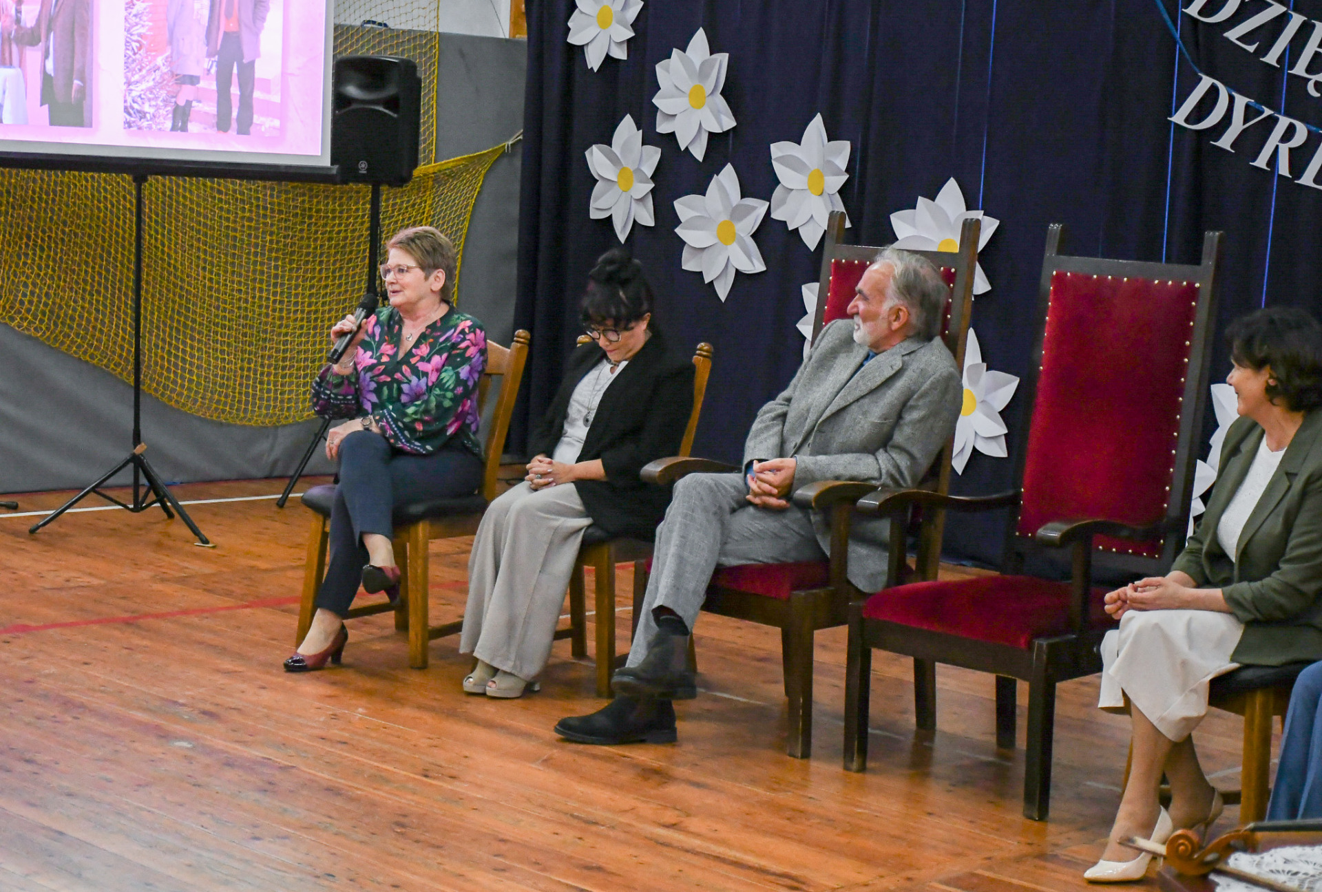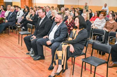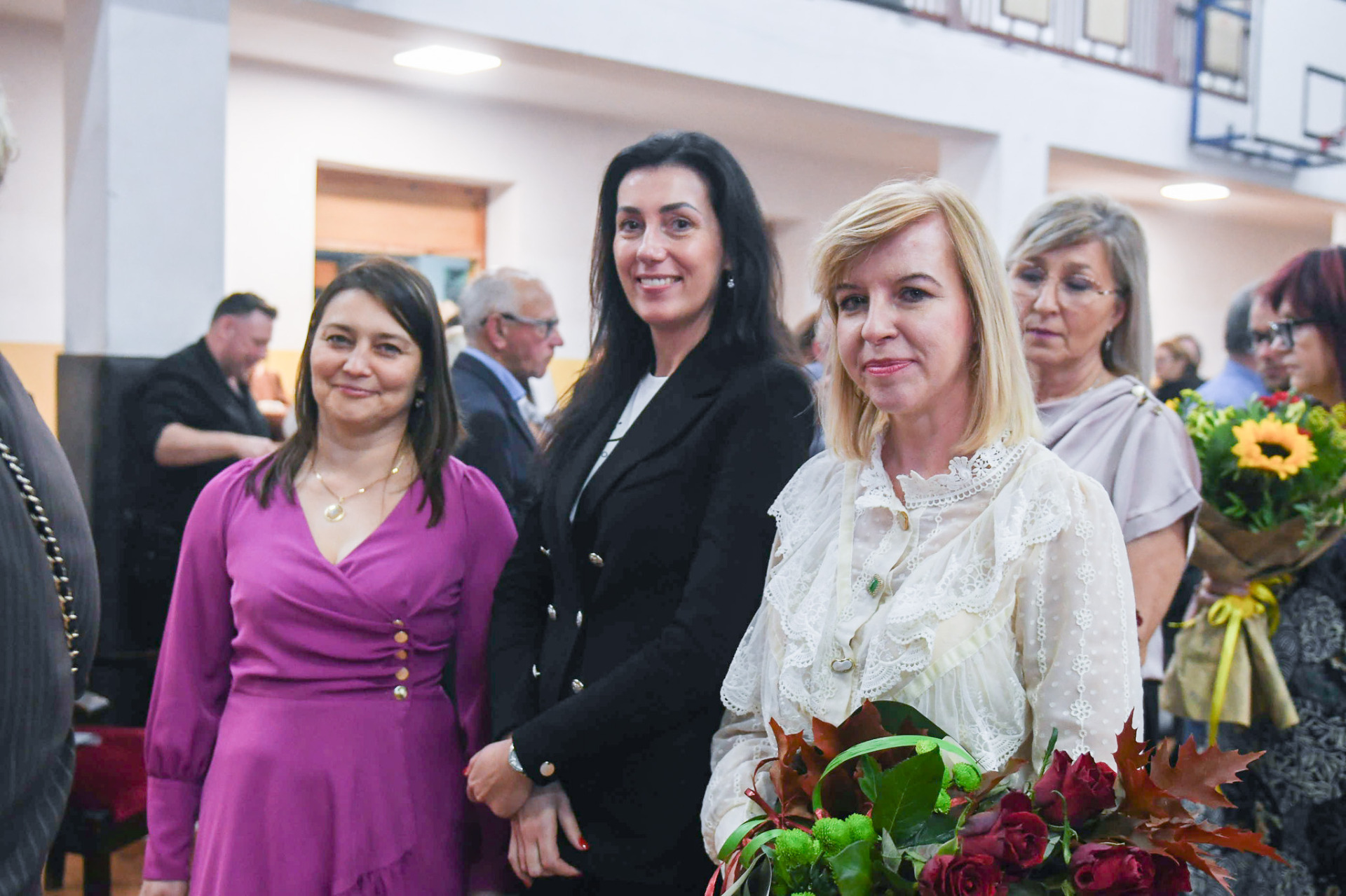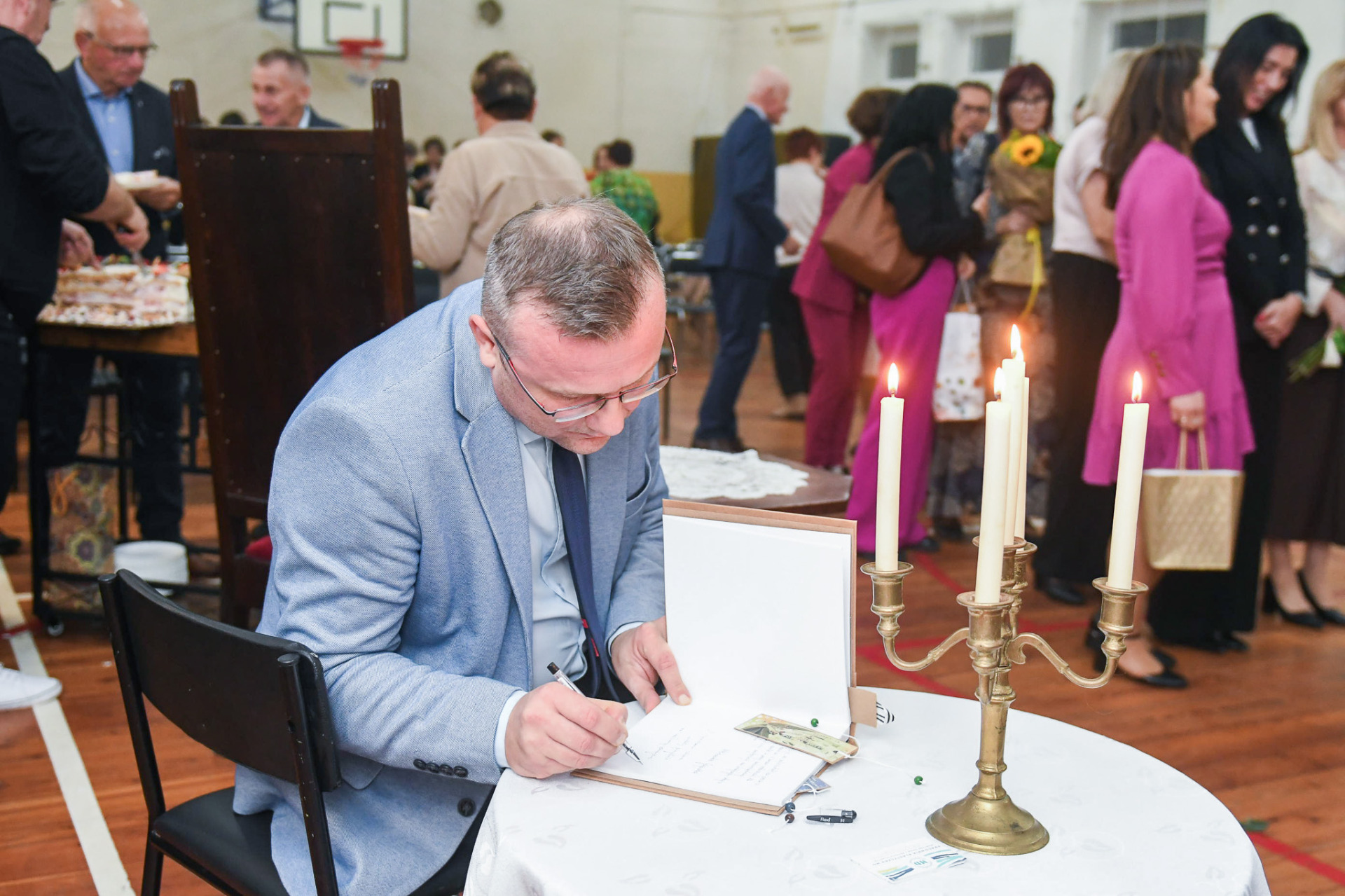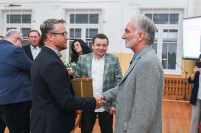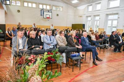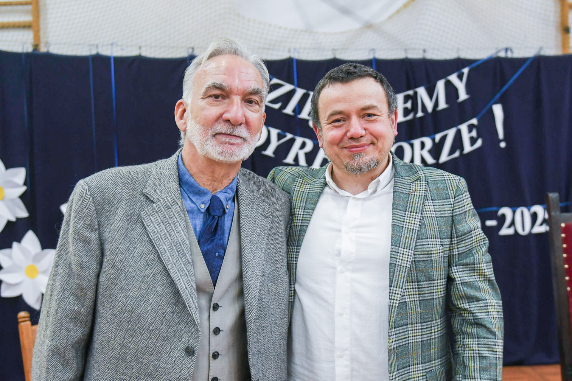 Czwartkowe popołudnie 9 października na pewno zapisało się w historii naszej szkoły. Tłumy pracowników i współpracowników podziękowało Dyrektorowi Sławomirowi Szymańskiemu, który podjął decyzję o przejściu na emeryturę. Pan Sławomir Szymański pracował w Szkole w Jędrzejewie od 1983 r., a funkcję dyrektora pełnił od 1994 r. Był nauczycielem fizyki i informatyki oraz wychowawcą. Sprawnie zarządzał placówką, co przełożyło się na liczne inwestycje, zainicjował i wspierał wiele projektów edukacyjnych - w tym te najcenniejsze dla społeczności uczniowskiej - związane ze współpracą ze szkołami aż 4 krajów: Słowacji, Czech, Gruzji i Szwecji. Skutecznie rozwiązywał pojawiające się problemy i miał dobry kontakt ze współpracownikami, Radą Rodziców i organem prowadzącym. Potwierdziły to liczne wspomnienia zaproszonych gości podczas spotkania. A co do samej uroczystości – planowaliśmy ją od kilku miesięcy. Na zaproszenie zareagowano bardzo pozytywnie i na sali sportowej pojawili się emerytowanie pracownicy, koledzy z pracy, obecni pracownicy szkoły, dyrektorzy szkół Gminy Czarnków, działacze związkowi, samorządowcy i przyjaciele. Spotkanie otworzył Dyrektor Szkoły Pan Robert Zimny i już po kilku minutach nastąpiła pierwsza z niespodzianek – na sali pojawili się przedstawiciele zaprzyjaźnionych szkół z Preselan i Sołcan (Słowacja). Zaskoczenia, owacja i wzruszenie. Nasz główny bohater zasiadł na honorowym miejscu, a prowadzący przybliżył sylwetkę Dyrektora Szymańskiego. Po chwili za sprawą skrzypaczki Michaliny Kowali przenieśliśmy się muzycznie do różnych krajów europejskich. W kolejnym punkcie przeplatały się wspomnienia z prezentacją – na ekranie zobaczyliśmy naszego szefa w różnych sytuacjach – i poważnych i zabawnych. Anegdoty, obrazy z przeszłości i osobiste refleksje dały nam wiele pozytywnych emocji. Na koniec zaśpiewaliśmy Panu Dyrektorowi Szymańskiemu tradycyjne STO LAT i wznieśliśmy toast za Jego zdrowie. Nasz bohater został poproszony o odsłonięcie swojej fotografii, która wzbogaci galerię dyrektorów przygotowywaną z okazji 80 – lecia szkoły. Na koniec delegacje mogły osobiście złożyć życzenia i wpisać się do pamiątkowej księgi. To był wspaniały wieczór – dziękuję wszystkim, którzy się przyczynili do zorganizowania tej wspaniałej uroczystości.