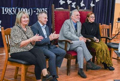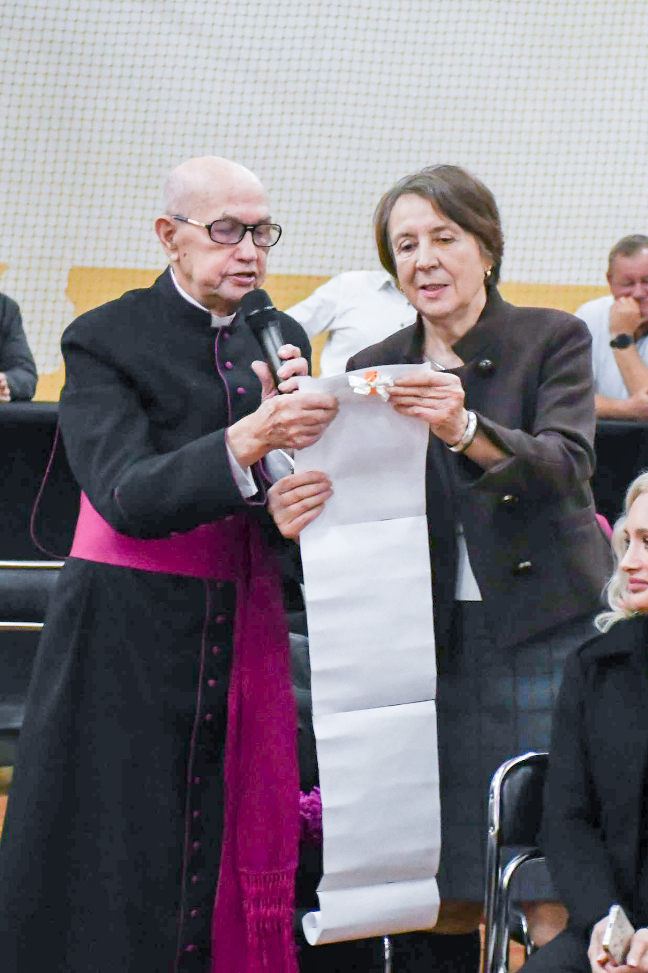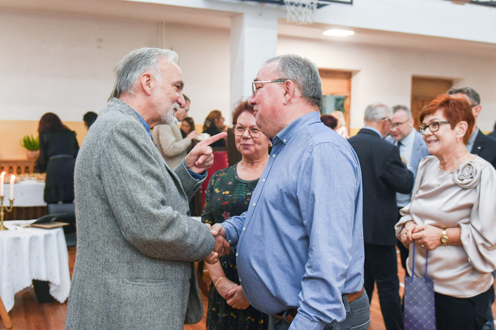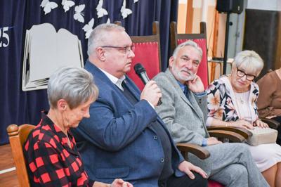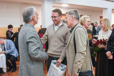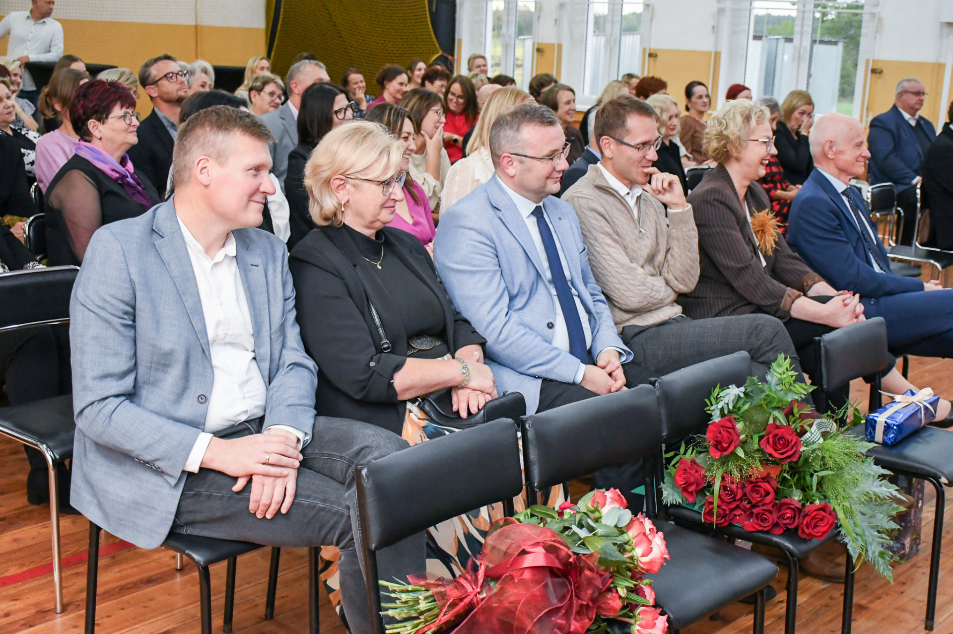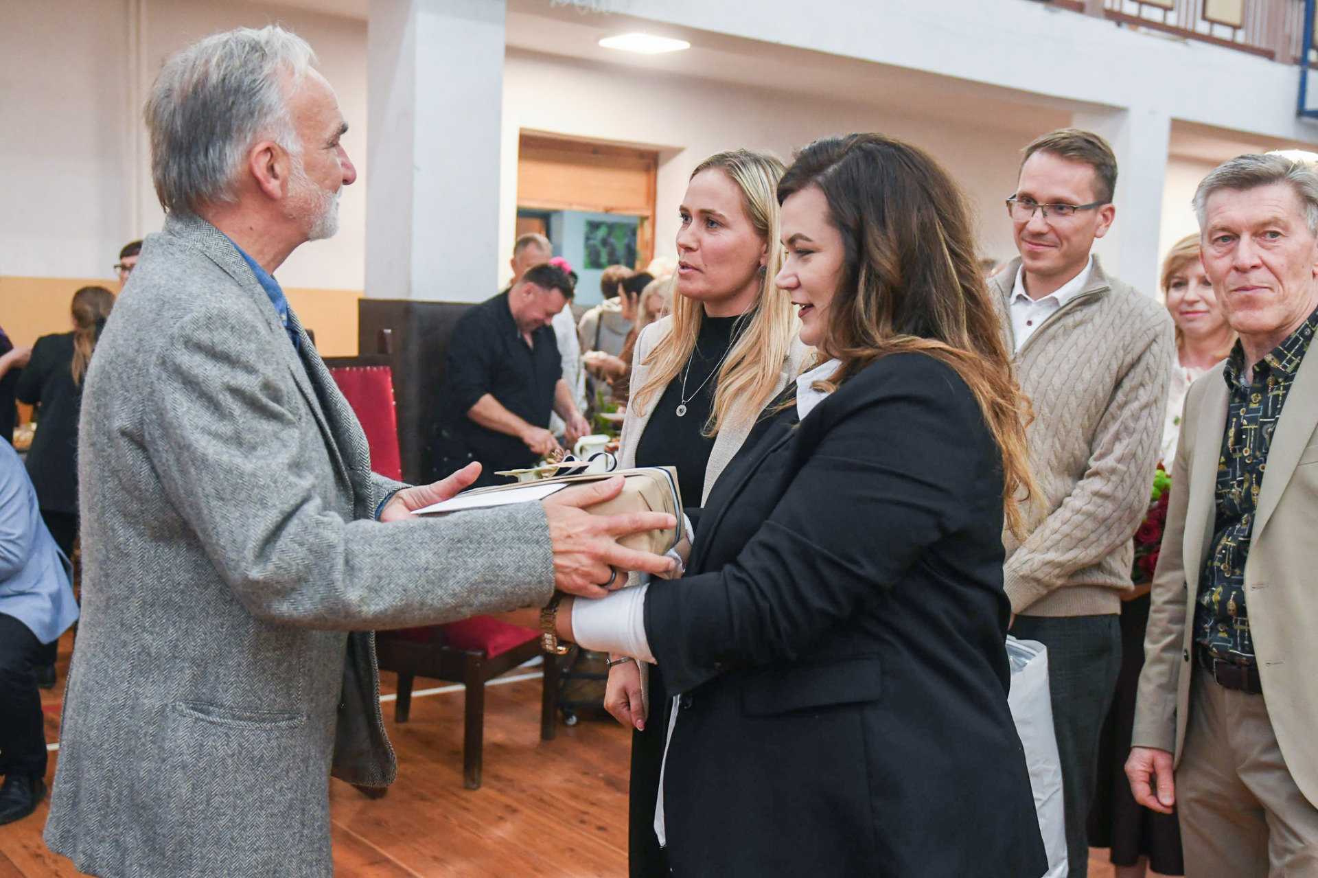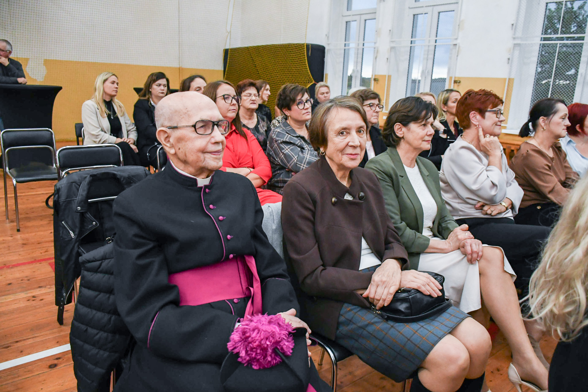 Czwartkowe popołudnie 9 października na pewno zapisało się w historii naszej szkoły. Tłumy pracowników i współpracowników podziękowało Dyrektorowi Sławomirowi Szymańskiemu, który podjął decyzję o przejściu na emeryturę. Pan Sławomir Szymański pracował w Szkole w Jędrzejewie od 1983 r., a funkcję dyrektora pełnił od 1994 r. Był nauczycielem fizyki i informatyki oraz wychowawcą. Sprawnie zarządzał placówką, co przełożyło się na liczne inwestycje, zainicjował i wspierał wiele projektów edukacyjnych - w tym te najcenniejsze dla społeczności uczniowskiej - związane ze współpracą ze szkołami aż 4 krajów: Słowacji, Czech, Gruzji i Szwecji. Skutecznie rozwiązywał pojawiające się problemy i miał dobry kontakt ze współpracownikami, Radą Rodziców i organem prowadzącym. Potwierdziły to liczne wspomnienia zaproszonych gości podczas spotkania. A co do samej uroczystości – planowaliśmy ją od kilku miesięcy. Na zaproszenie zareagowano bardzo pozytywnie i na sali sportowej pojawili się emerytowanie pracownicy, koledzy z pracy, obecni pracownicy szkoły, dyrektorzy szkół Gminy Czarnków, działacze związkowi, samorządowcy i przyjaciele. Spotkanie otworzył Dyrektor Szkoły Pan Robert Zimny i już po kilku minutach nastąpiła pierwsza z niespodzianek – na sali pojawili się przedstawiciele zaprzyjaźnionych szkół z Preselan i Sołcan (Słowacja). Zaskoczenia, owacja i wzruszenie. Nasz główny bohater zasiadł na honorowym miejscu, a prowadzący przybliżył sylwetkę Dyrektora Szymańskiego. Po chwili za sprawą skrzypaczki Michaliny Kowali przenieśliśmy się muzycznie do różnych krajów europejskich. W kolejnym punkcie przeplatały się wspomnienia z prezentacją – na ekranie zobaczyliśmy naszego szefa w różnych sytuacjach – i poważnych i zabawnych. Anegdoty, obrazy z przeszłości i osobiste refleksje dały nam wiele pozytywnych emocji. Na koniec zaśpiewaliśmy Panu Dyrektorowi Szymańskiemu tradycyjne STO LAT i wznieśliśmy toast za Jego zdrowie. Nasz bohater został poproszony o odsłonięcie swojej fotografii, która wzbogaci galerię dyrektorów przygotowywaną z okazji 80 – lecia szkoły. Na koniec delegacje mogły osobiście złożyć życzenia i wpisać się do pamiątkowej księgi. To był wspaniały wieczór – dziękuję wszystkim, którzy się przyczynili do zorganizowania tej wspaniałej uroczystości.
