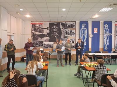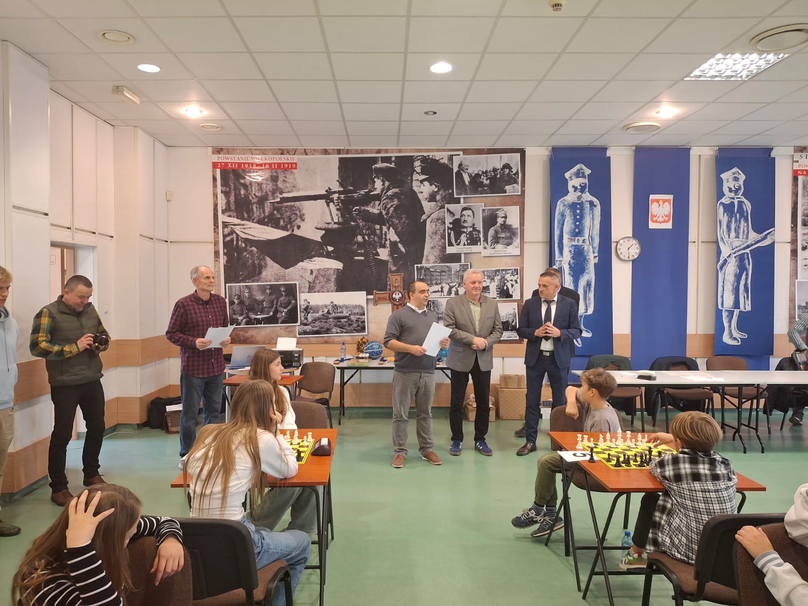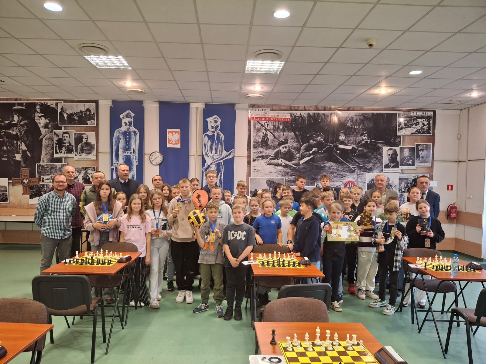 28 października zainaugurowaliśmy projekt szachowy, który swoim zasięgiem objął 5 szkół aż z trzech powiatów: Czarnkowsko – Trzcianeckiego (SP w Rychliku i SP w Jędrzejewie, SP w Połajewie), Chodzieskiego (SP w Budzyniu), Obornickiego (SP nr 3 w Rogoźnie). Przygotowania rozpoczęto we wrześniu i ostatecznie powołano do życia Międzypowiatową Szkolną Ligę Szachową. Rozgrywki będą odbywać się w systemie turniejowym – każda szkoła będzie gospodarzem, a wielki finał rozegrany zostanie w Rogoźnie. Przewidziano dwie kategorie wiekowe – klasy I-IV i V – VII. Każda z drużyn zbiera punkty turniejowe do ogólnej klasyfikacji. Dodatkową motywacją jest możliwość rotowania składem oraz rywalizacja indywidualna, co pozwoli na zaangażowanie wielu młodych szachistów i szachistek. Pierwszy Turniej odbył się w Budzyniu. Naszą szkołę reprezentowali w kategorii I-IV Oskar Potasiński, Jan Przybylski, Iga Warnke, Stanisław Suchocki, a w starszej grupie V-VII Nikodem Dolny, Zuzanna Choroszczak, Aleksy Warnke i Maria Rajek. Graliśmy ze zmiennym szczęściem – każdy uczestnik zdobył punkty, dla niektórych był to turniejowy debiut (Jan, Stasiu). Na podium klasyfikacji indywidualnej znalazł się Oskar (III miejsce) i Zuzanna (II). W drużynówce uplasowaliśmy się na III (starsi) i IV (młodsi) miejscu. Nad całością zawodów czuwał Pan Sylwester Flisikowski, a gospodarze zapewnili poczęstunek (kanapki były rewelacyjne !!!) oraz nagrody, statuetki i medale. Szachy uczą i bawią – cieszymy się, że w naszej szkole już drugi rok mamy dodatkowe zajęcia pozalekcyjne. Dziękujemy Pani Ewelinie Dolnej i Sylwestrowi Flisikowskiemu za transport i opiekę. Kolejny Turniej już w grudniu w Połajewie !!!!