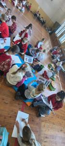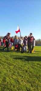 W tym samym czasie starsze klasy zmagały się ze swoim zadaniem, a była to HISTORYCZNA GRA TERENOWA „ŚLADAMI NIEPODLEGŁEJ”. Drużyny otrzymały mapy z zaznaczonymi punktami, do których musiały dotrzeć, aby zaliczyć zadanie. W prawidłowym zlokalizowaniu punktów pomogły zagadki.
