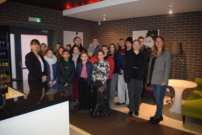 Uczestnicy Kółka Historycznego SP w Jędrzejewie wzięli udział w projekcji fabularyzowanego filmu dokumentalnego „U stóp Góry Żydowskiej”. W kinie Światowid w Czarnkowie mogliśmy przenieść się w czasie i zobaczyć wielokulturowy Czarnków, gdzie obok siebie mieszkali Polacy, Żydzi i Niemcy. Materiały i scenariusz do filmu przygotowało Muzeum w Czarnkowie. Zrobilismy sobie wspólne zdjęcie z autorkami scenariusza Panią Romką Bartkowiak i Karoliną Rążewską – Golik. Koordynatorem projektu z ramienia Forum Dialogu w Warszawie był nasz Pan Dyrektor Robert Zimny. Wszystkich chętnych zapraszamy do kina w Czarnkowie – 1 grudnia o godz. 17.00 odbędzie się drugi pokaz premierowy (darmowe wejściówki są dostępne w Muzeum). Naprawdę warto poznać historię naszego regionu !!!