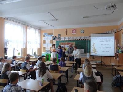 Mistrzowie matematyki zwycięskich szkół odebrali z rąk dyrektora szkoły i wójta gminy nagrody książkowe oraz komplety kart matematycznych. Dodatkowymi nagrodami były akcesoria komputerowe, ufundowane przez p. Sołtys wsi Jędrzejewo. Pozostali uczniowie i opiekunowie otrzymali nagrody pocieszenia.